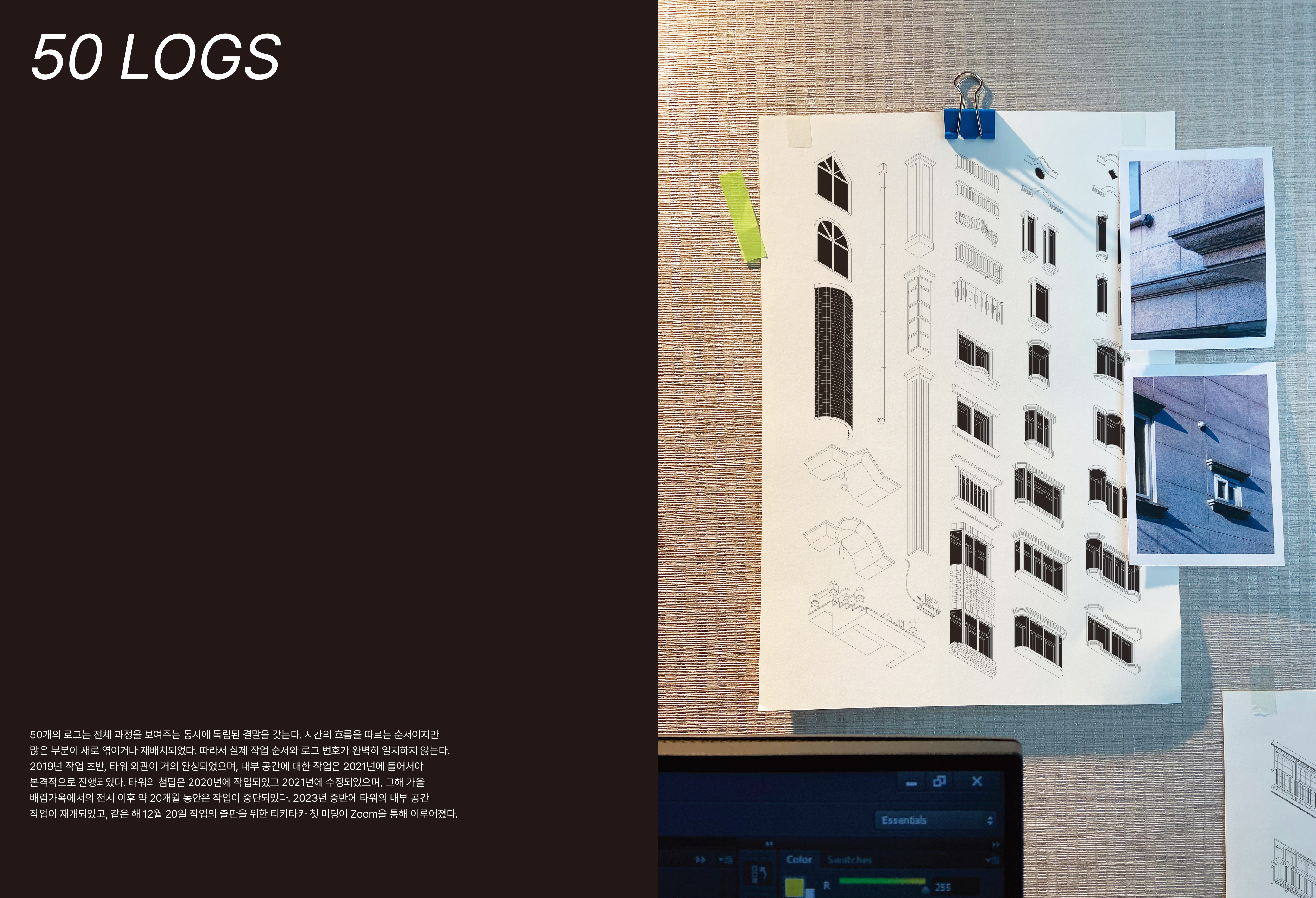 후반부에선 타워 빌라 프로젝트가 진행되는 과정을 50개의 로그기록으로써 보여준다. 50 로그는 짧은 에세이와 건축 도면, 사진, 3D 모델링 결과물 등으로 이루어져 있으며, 타워 빌라 프로젝트의 단계별 작업내용과 과제, 그로 인해 파생되는 사회 문화적 가치/의미, 나아가 작업 주체인 건축가의 자기비판과 정서까지 담고 있다. 이는 마치 컴퓨팅 애플리케이션의 로그파일이 전체 시스템을 진단하고 문제를 해결하는 방식과도 닮았다.